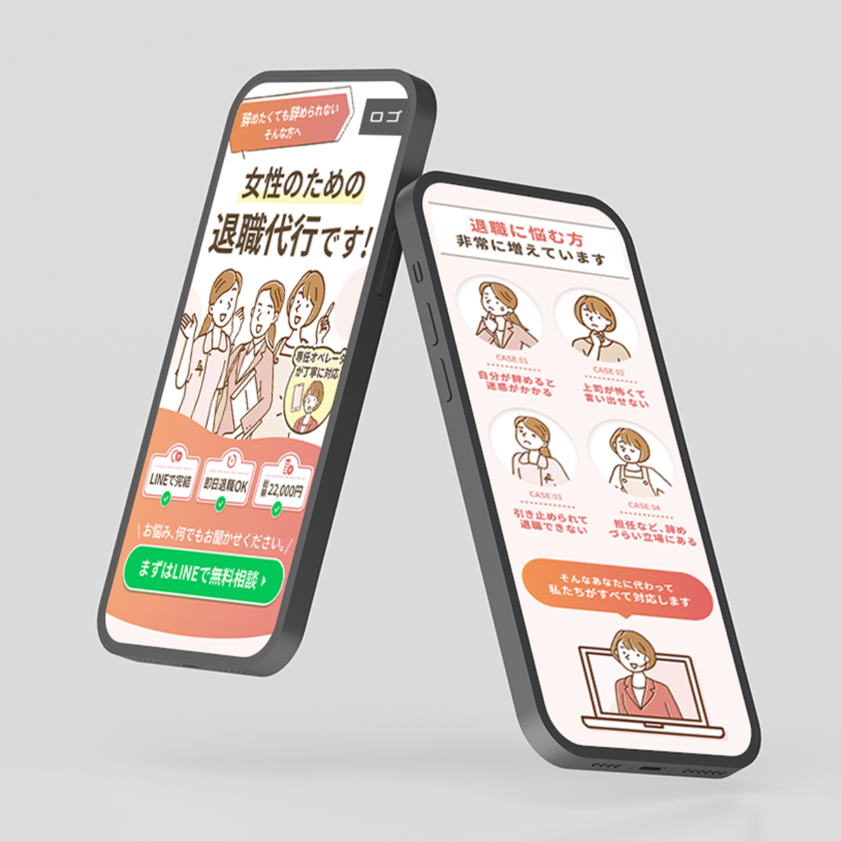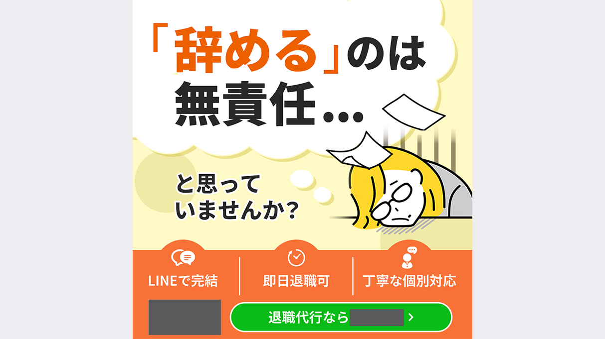 退職に伴う不安やストレスを代行によって解消できる点を訴求しました。