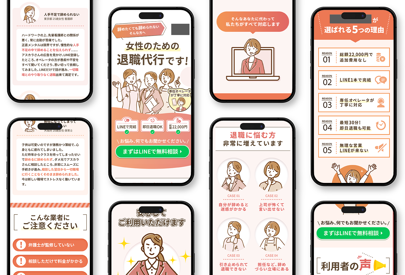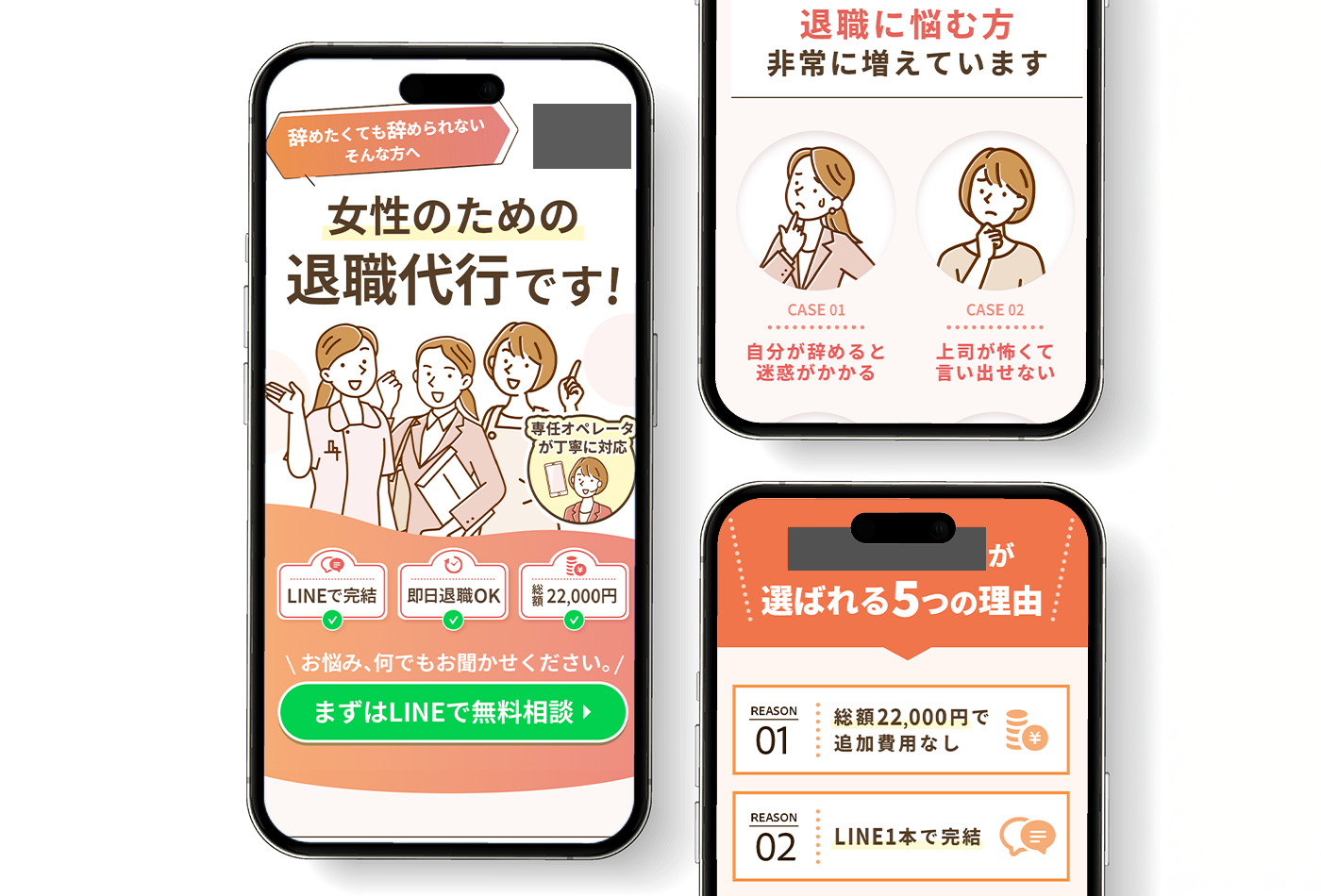 退職に伴う不安やストレスを代行によって解消できる点を訴求しました。